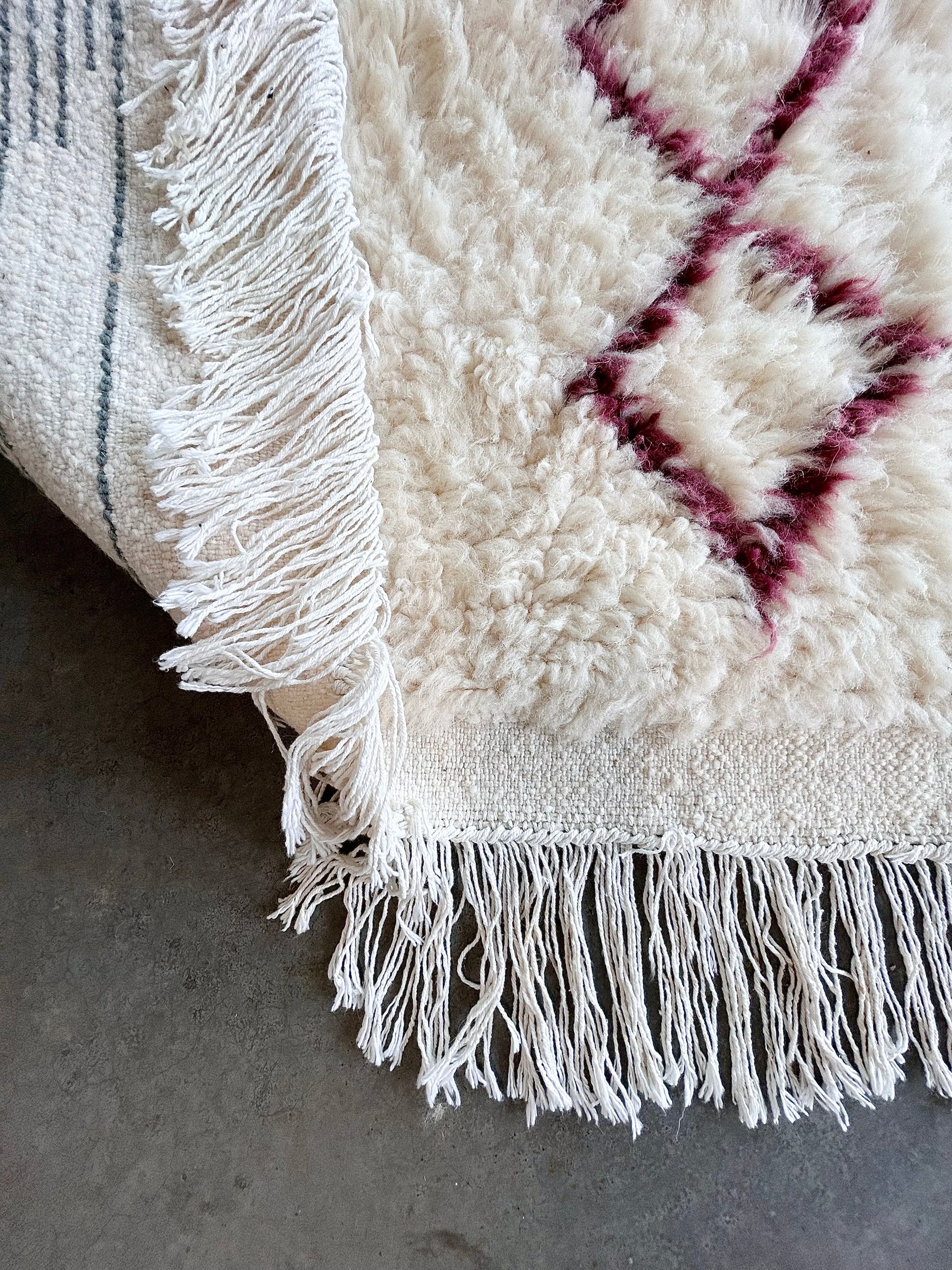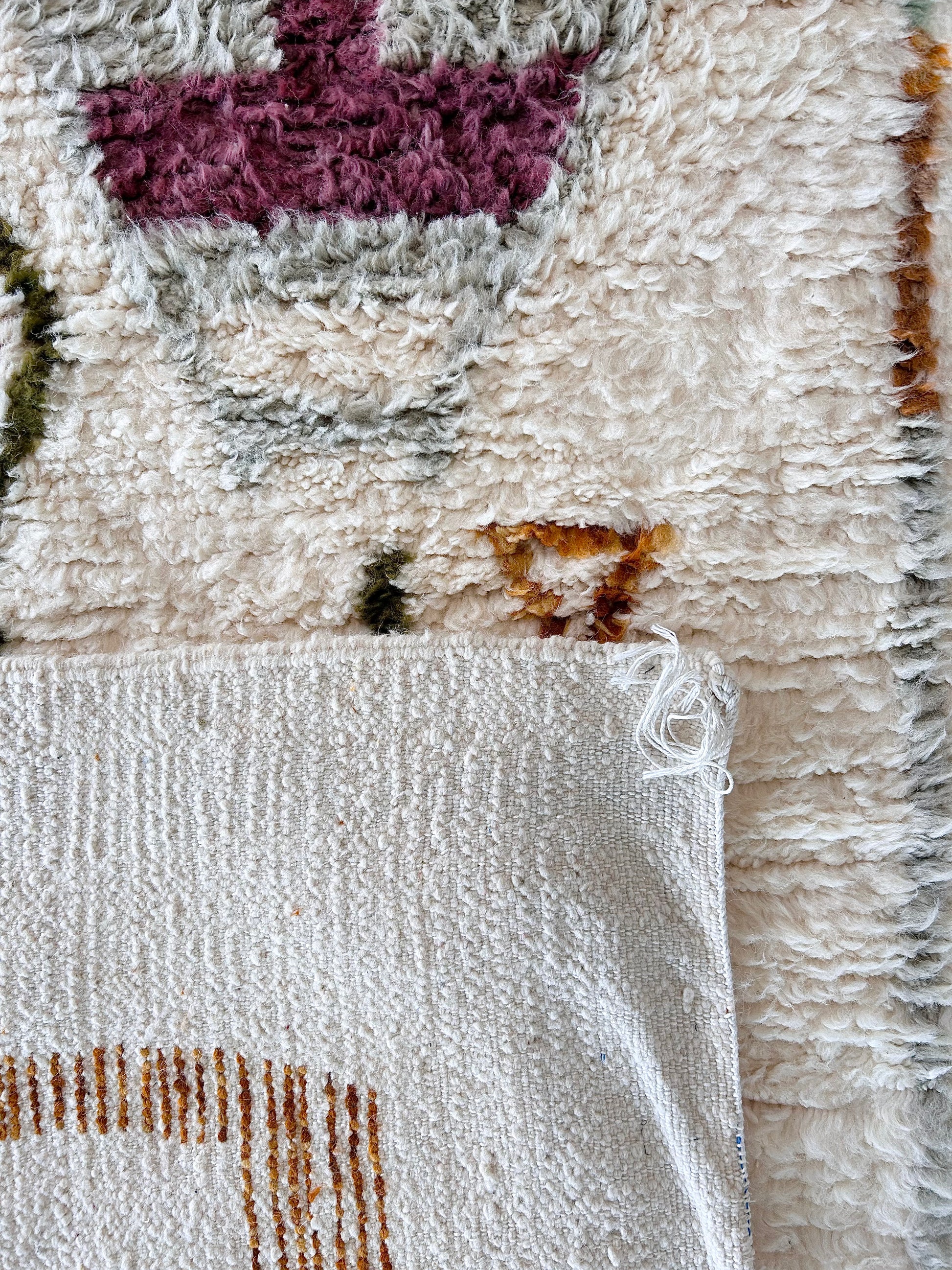 Vous avez un coup de coeur pour ce tapis berbère mais il n'est pas aux bonnes dimensions ? Vous aimeriez lui apporter des modifications de couleurs ou de design ? Contactez MAISON MRIRT et nous le ferons créer sur-mesure pour vous par une tisseuse avec qui nous collaborons !